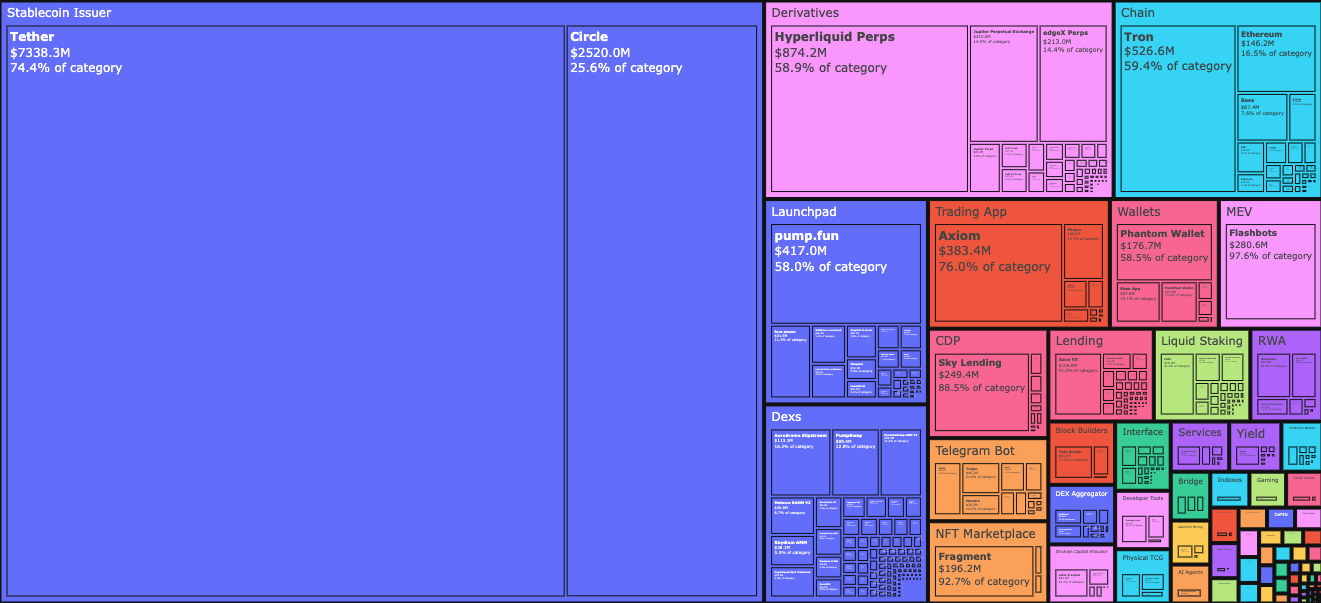 Combined, in Jan of 2025, these two sectors alone accounted for $575M in fees. It makes sense when you consider what consumers want. Meme trading and perpetual exchanges allow users to make quick profits. They pay hefty fees in pursuit of quick returns. The category rose from 1% of overall revenue to just over 15% between 2022 and 2025.