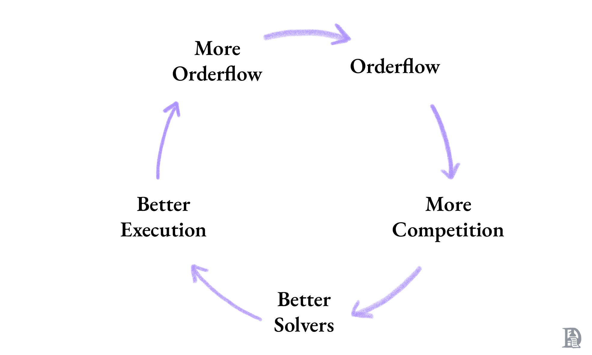 The solver networks that attract the most order flow will attract the best solvers. The best solvers will deliver better execution. Better execution will attract more order flow. The flywheel is already observable. Only consistent demand makes this durable, though. Orchestration solutions are in a unique position as they sit close to where the demand originates.