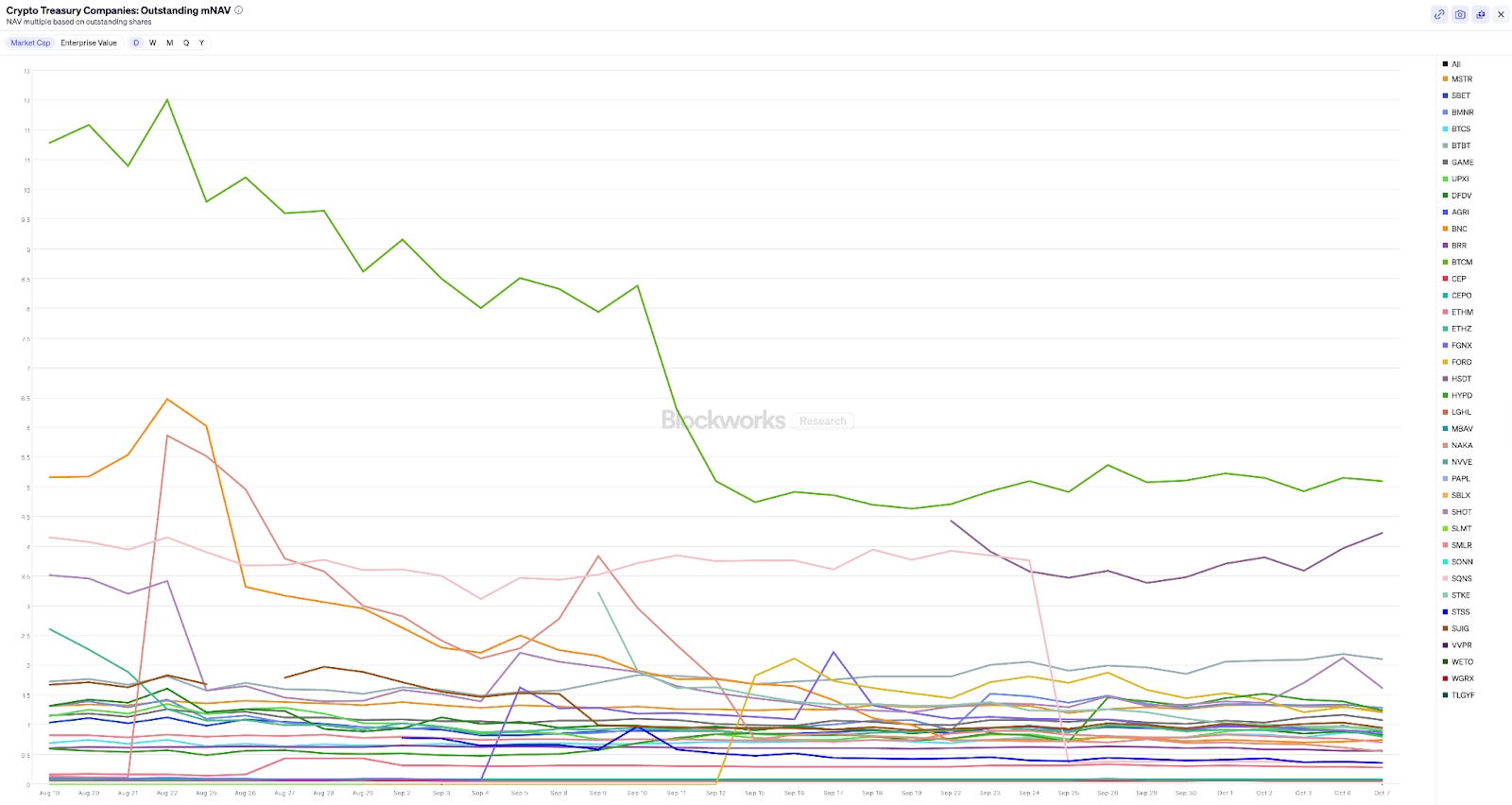 The newer DATs catering to assets that are further down the risk curve will have to stick to ATM equity issuances, as they may not find subscribers for convertible notes due to size and volatility constraints. Remember, traders need size and stock that is more volatile than the asset the company is trying to acquire. Their market cap can remain above NAVs only when traders are interested in them. mNAVs of most DATs have been trending lower, with many trading below 1. MSTR used to trade at an mNAV of more than 4, not too long ago. It now trades at 1.2.