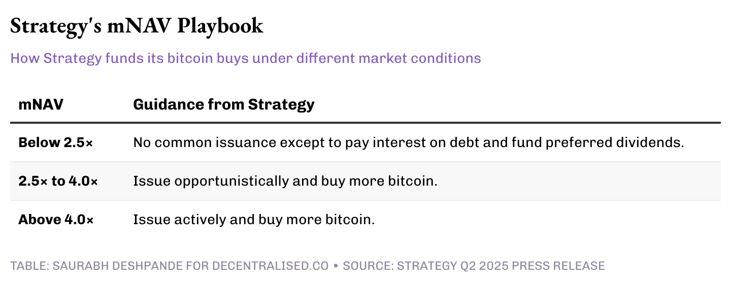 Strategy has a rulebook based on a ratio of market capitalisation of the stock to market value of bitcoin holdings, called mNAV (market-to-net-asset-value).