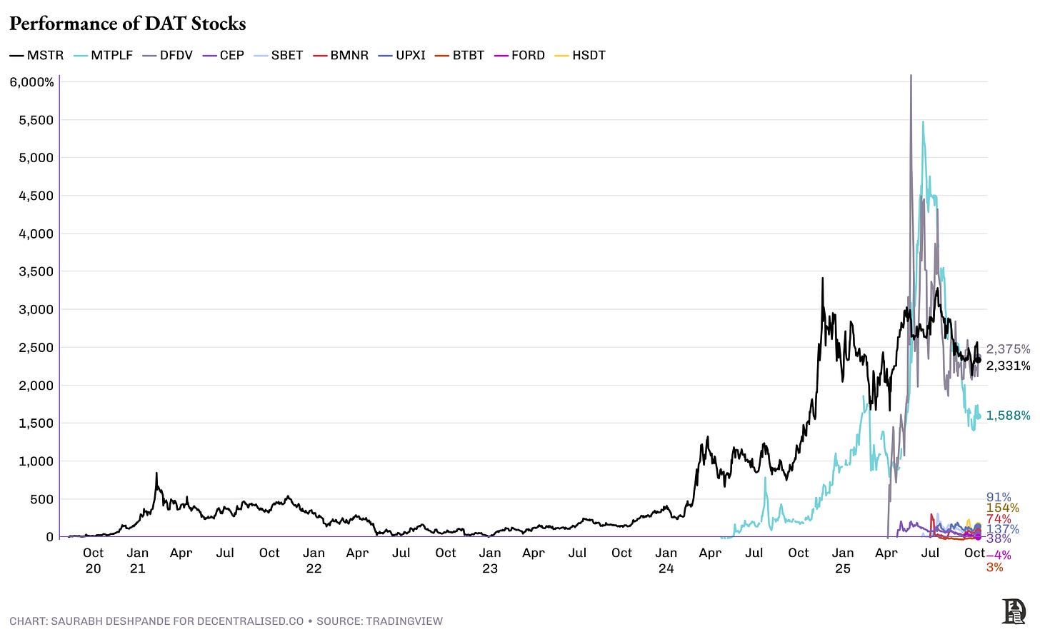 Even when you have the right asset, it’s not going to be easy with so much competition. Only a handful of DATs can access the complete toolkit of capital raising mechanisms. This creates a structural advantage that compounds over time. This can also be seen in the stock performance.