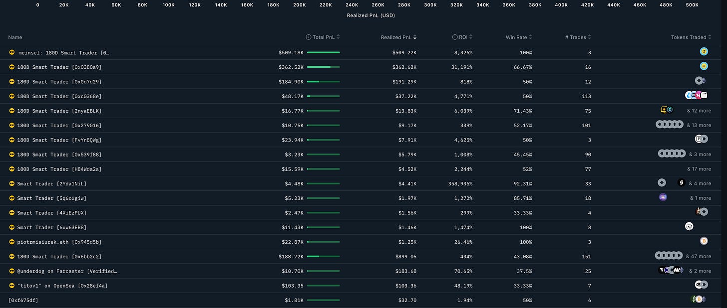 Nansen does a similar job with their AI product, which was launched in 2021 and focuses on labeling wallets for activity. In 2025, they pivoted heavily to an AI-centric focus, with the bulk of it being delivered through a mobile app. You can currently open their app and request tokens within a specific market-cap that has experienced a high degree of smart money flows.