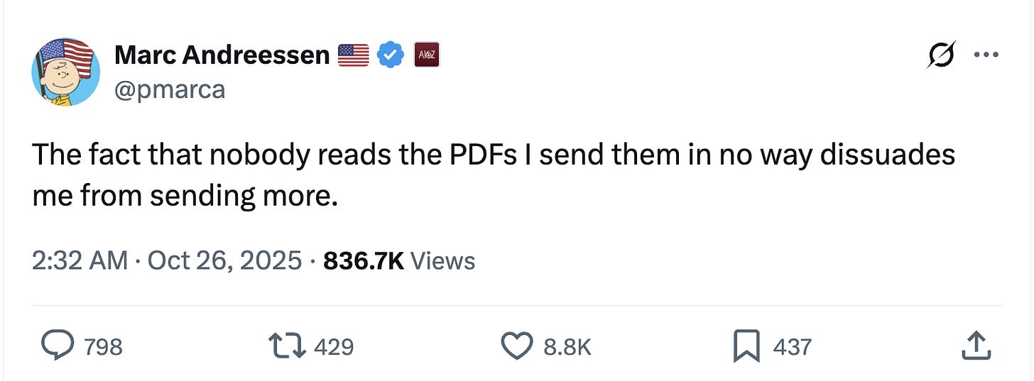 True privilege as a creator on the web today is the ability to take a break. Most creators understand that producing high-quality content at a high frequency is a one-way street to burnout. This is why writers like Packy and Ben Thomson now have multiple associated brands. The core distribution is used to gather eyeballs, while other creators align themselves behind these established names. Effectively, these brands are also micro-communities where the creators are taste-makers who operate in a top-down manner.