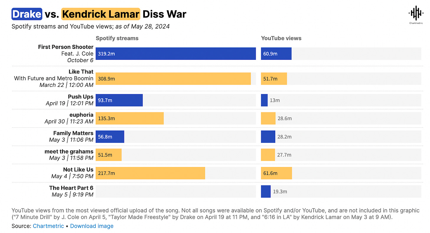 This beats current methods because the feedback is real-time and financially backed. Focus groups tell you what people claim they care about. Attention markets reveal what people are willing to bet actual money on. Take the Kendrick vs Drake beef. Attention whipsawed between both artists as each diss track dropped. Labels get actual market signals on what’s breaking through.