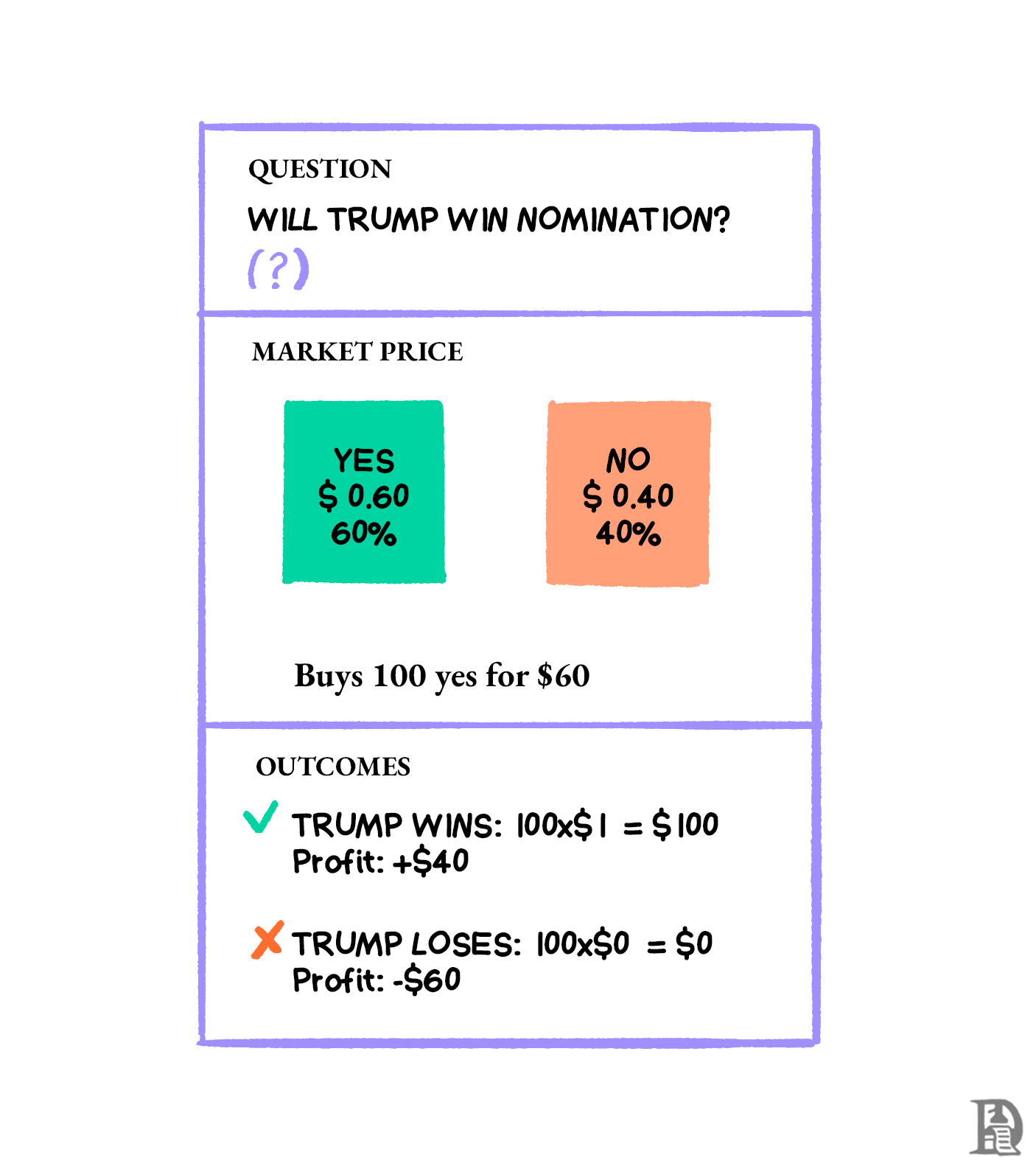 Prediction markets are coordination engines. Their power lies in how they match people with different convictions. Someone who follows polling data closely believes Trump’s odds are undervalued at 60% and will buy until the price reflects their view; someone who thinks the market is too optimistic will sell.